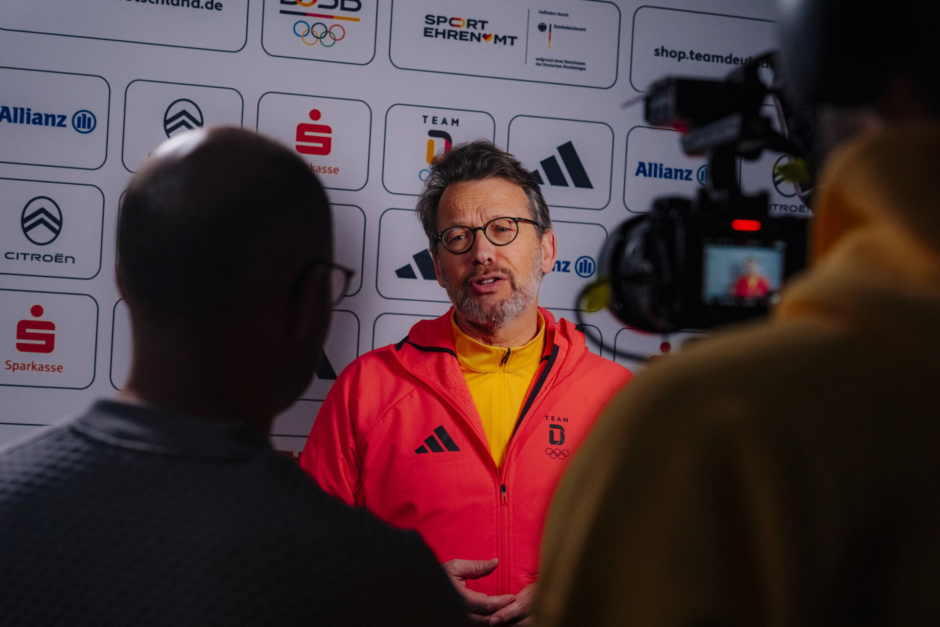 Es ist dieser hemdsärmelige Charme, der Weikert auch in Gesprächen mit Athletinnen und Athleten zumeist den richtigen Ton treffen lässt. Der Rechtsanwalt aus Limburg, der bei seiner Wahl im Dezember 2021 „weniger Anzug und mehr Trikot“ versprach, hört zu und freut sich, wenn Team-D-Mitglieder in Gesprächen kein Blatt vor den Mund nehmen. „Mir ist es wichtig zu verstehen, was unsere Athletinnen und Athleten bewegt, und das geht nur, wenn sie offen und ehrlich mit mir sein können“, sagt er. Ob im Deutschen Haus in Cortina, im Olympischen Dorf in Mailand oder an den Wettkampfstätten - überall sucht Weikert den Kontakt. „Ich nehme aus diesen Gesprächen sehr viel mit und empfinde den gegenseitigen Umgang als sehr wertschätzend“, sagt er.